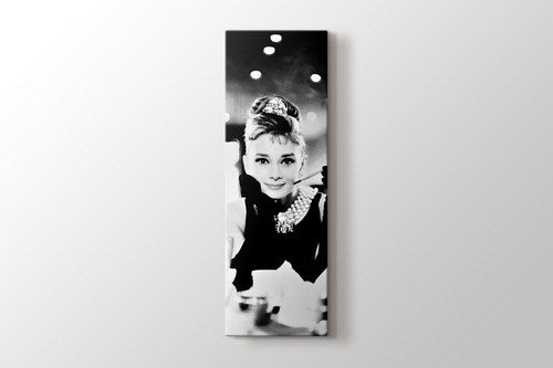 Tiffany’de Kahvaltı’dan bir kare, siyah beyaz kanvas Audrey Hepburn tablosu.