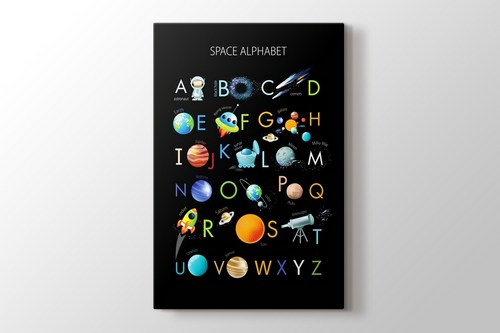Çocuklar için bu uzay konseptli alfabe kanvas tablo, çocuğunuza harfleri öğretmenin en güzel yolu.