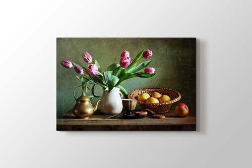 her açıdan gayet iyi bir ürün. renkleri kalitesi ambalajı ve teslim süreci. Sadece resimden kaynaklı çiçek vazosunda anlamsız 2 yansıma var. tabloda defo gibi görünüyor.