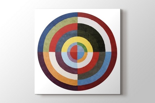 Yuvarlakların hepsi bir arada, en merkezinde bile tek bir renk olmayan bir paylaşımın olduğu bu tablo duvarlarınıza rengarenk bir görüntü sunacak. Robert Delaunay'ın zihninden tabloya çıkan Le Premier Disque…