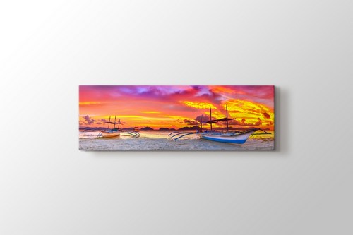 Sahilde Tekneler ve Günbatımı