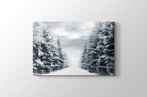 Snowy Road Between Trees
